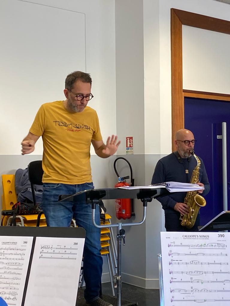 Mèze en novembre. En plus de diriger les cinq mouvements de La Part d’Euterpe, il a organisé un atelier d’improvisation qui a permis de mettre le pied à l’étrier de l’impro jazz pour les débutants, et d’améliorer leur pratique pour les autres.